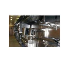 Cocinas industriales para restaurantes y cantinas empresariales realizadas de acero inoxidable.