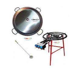 El Kit Paella Pack 60 personas esta compuesto por un versatil PAELLERO PROFESIONAL de 70cm de 4 aros independientes , la paella o paellera de acero pulido de 100cm o hasta 60 raciones, además contiene las estables patas reforzadas y la paleta de 65cm . Opcionalmente puedes elegir al mejor...