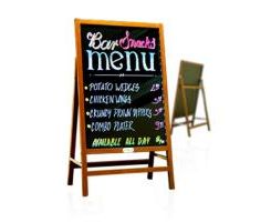 Pizarras con marco de simil-madera y pie integrado.