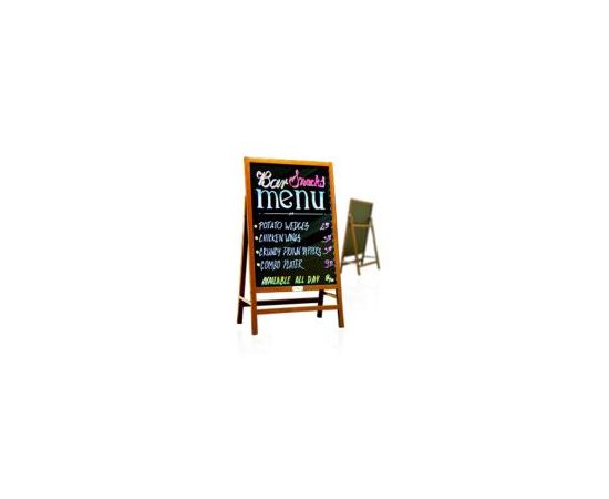 Pizarra LED con marco de simil-madera y pie incorporado